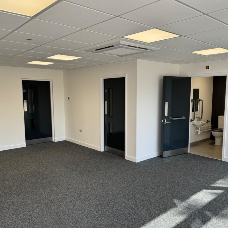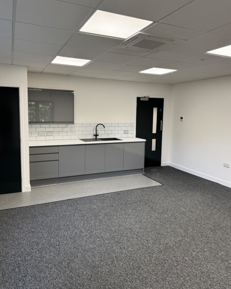 Throughout the entire units warehouse and office area, redecoration works took place, with the entire unit undergoing painting works along with new epoxy coated floors being installed throughout the warehouse, carpeting being installed within the office areas, and vinyl flooring being installed in the WC’s and the kitchenette areas. Along with this was the entire suspended ceiling system, which was stripped out and replaced to again bring back more life into the unit.